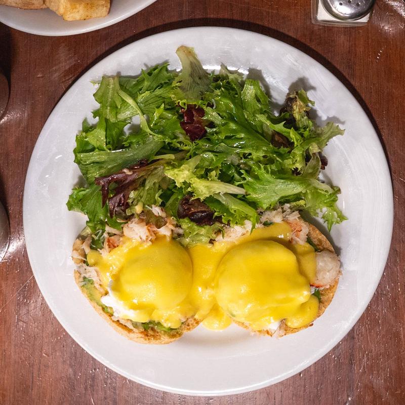 Dungeness crab, avocado, hollandaise, multigrain English muffins